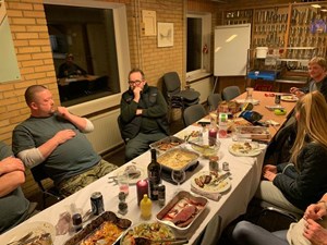 Terrænskydning er for os i MVTS en meget social sport. Når vi er i f.eks. Jylland eller Sverige, overnatter vi ofte, og laver mad og hygger os uden for banen.